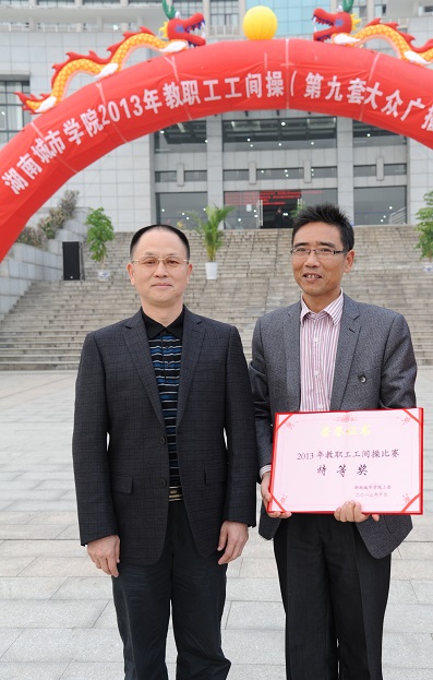 学校党委书记赵运林为获得特等奖的体育学院代表队颁奖