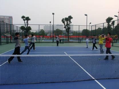 “阳光体育”课外活动开展以来,有15个辅导项目交叉开展。活动以兴趣班为单位组织实施,每班30-40个学生不等,每天10个辅导项目同步展开,有40O多名非体育专业学生走进体育训练馆、网球场等体育活动场所进行课外体育锻炼。