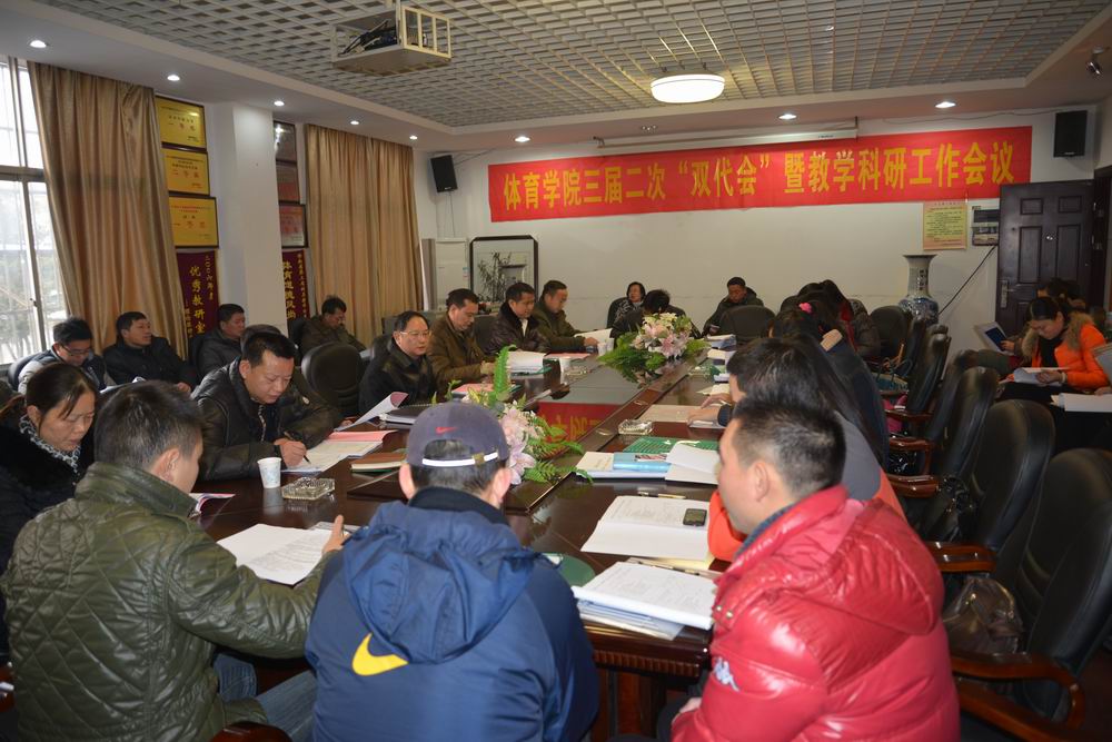 本次大会听取并审议了院长唐吉平所做的《体育学院2013年工作总结和2014年工作规划》的报告,副院长李志宏详细解读了《体育学院教师教学考核实施细则》、《体育学院教学工作量计算和管理办法》、《体育学院科研考核细则》,办公室主任董喆对《体育学院年终目标考核细则》进行了说明。会议还听取了唐吉平院长关于体育学院绩效工资分配方案的有关说明。与会代表围绕院长工作报告和学院分配方案等方面进行了广泛的探讨,提出了很多宝贵的意见和建设性建议。