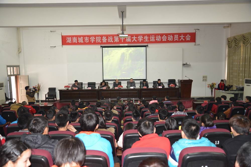 (通讯员郭羽)“不畏艰难、坚持不懈、斗志昂扬、永争第一”。3月4日下午,响亮的口号声在学校视频会议室响起,我校备战2014年湖南省第十届大学生运动会的125名运动员和教练员在集训动员大会上庄严宣誓。党委副书记、副校长孟昭武,党政办、教务处、宣传部、学生处、团委相关负责人以及体育学院党政领导出席了动员大会。