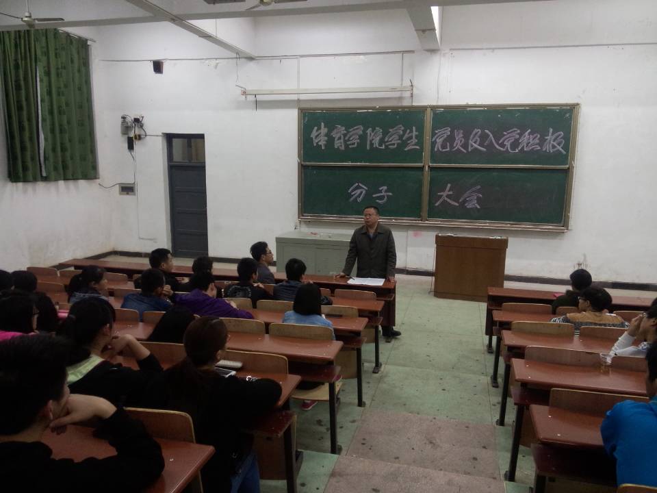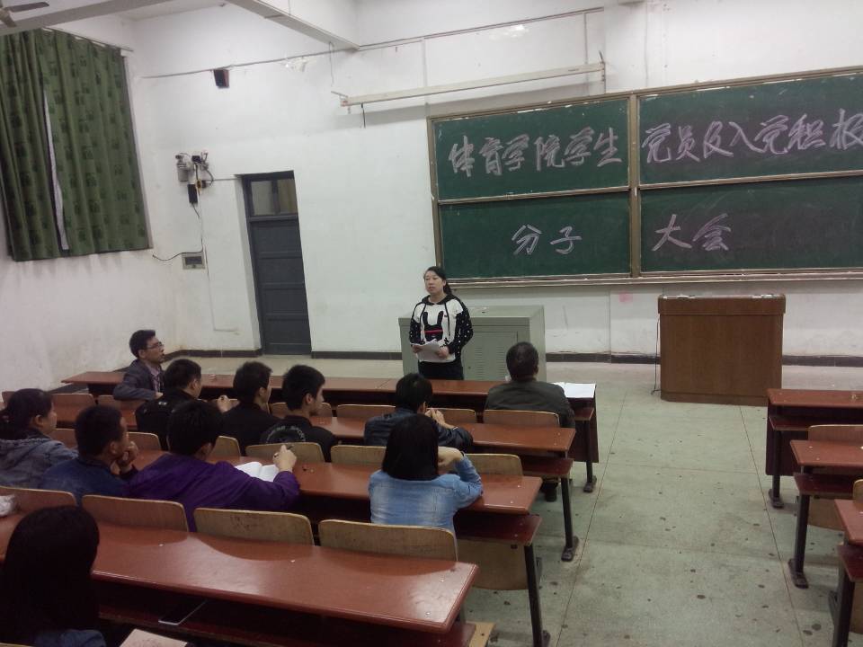 (通讯员 郭羽)4月18日晚上7:00,体育学院党总支在一教学楼107教室召开了学生党员和入党积极分子大会。出席会议的领导有学院党总支书记熊兴吾、党总支副书记郭羽、党总支纪检委员龚莹莹、教工党支部宣传委员王静、团总支书记王雄鹰,参加会议的有学院全体学生党员、预备党员和入党积极分子近100人,会议由党总支副书记郭羽主持