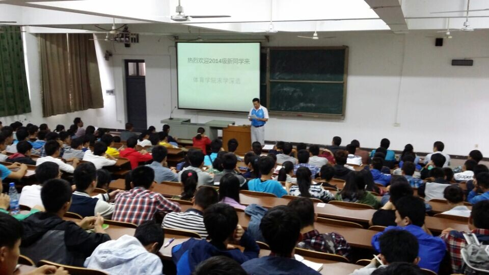 (通讯员 郭羽)9月17日下午16:20,体育学院2014级迎新师生见面会在一教学楼408教室举行。体育学院院长唐吉平、党总支书记熊兴吾、副院长刘鸥、副院长李志宏、党总支副书记郭羽,以及学院的教授、博士、教研室主任、实验室主任、办公室主任、教务秘书、辅导员和所有新生班主任出席了见面会,会议由总支副书记郭羽主持。