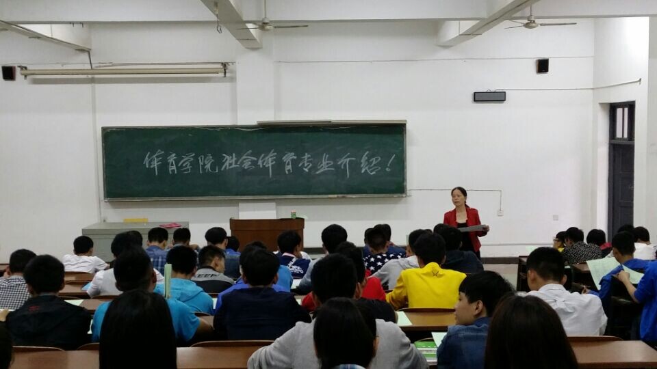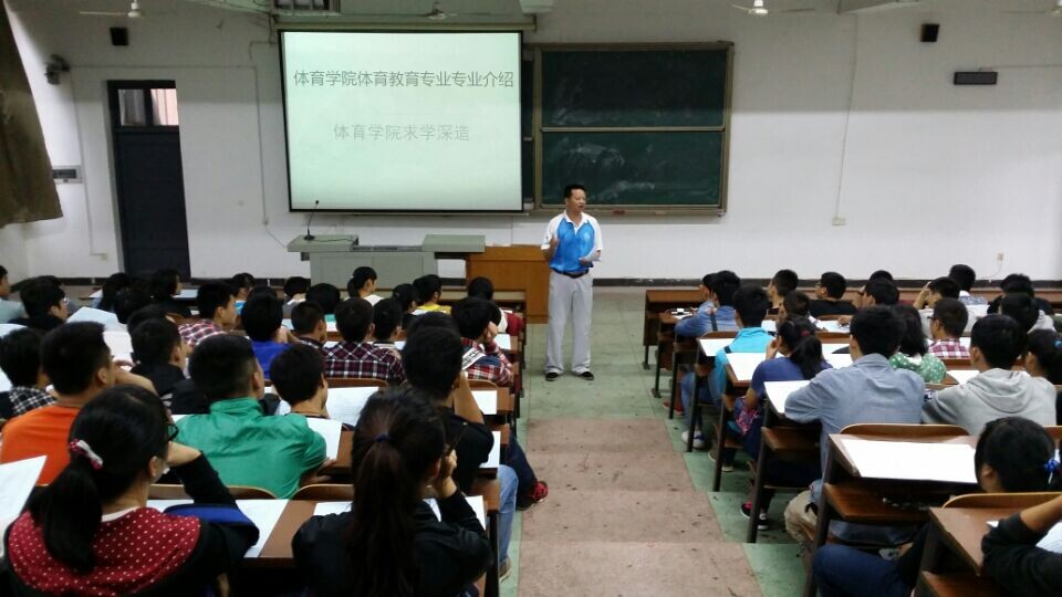 (通讯员 郭羽)9月17日下午17:00,体育学院体育教育专业和社会体育指导与管理专业分别在一教学楼408教室、404教室举行了新生入学专业介绍讲座。2014级全体新生参加了本次讲座,体育教育专业由院长唐吉平教授主讲,社会体育指导与管理专业由副院长李志宏教授主讲。
