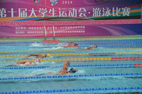 9月16日,我校游泳队在长沙民政职业技术学院举行的省第十届大运会游泳比赛中勇夺一银三铜的优异成绩,凯旋而归,为我校代表团出征本届省大运会取得开门红。本次游泳比赛是本届大运会第一项比赛,也是我校第一次参加游泳项目比赛。本次游泳比赛我校共派5人(4男1女)参赛,同类学校中参赛人数最少,但是获奖效率极高,4人拿牌,5人均获名次(一银三铜,两个第四,三个第五),超额完成既定任务,实现我校在省大运会游泳项目全新突破,为后续出征代表队注入信心和勇气!
