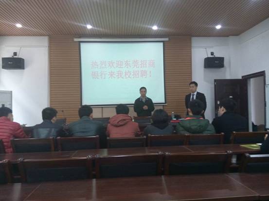 招聘会在新食堂三楼招生就业处303招聘室进行,进过笔试、面试和性向测试三个环节,体育学院的朱香梅、黄彬、黎峰、李亚波、刘爱婷、王杰、沈亚奇、田接文8位同学被东莞招商银行录用。