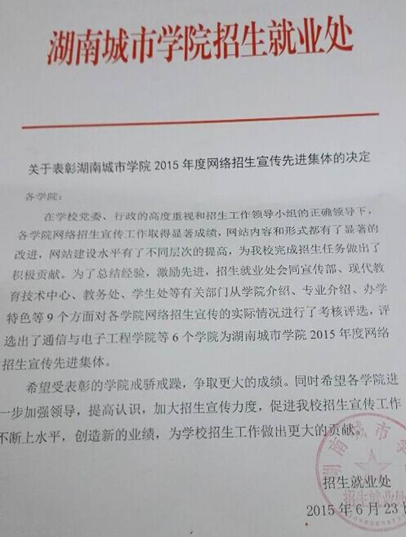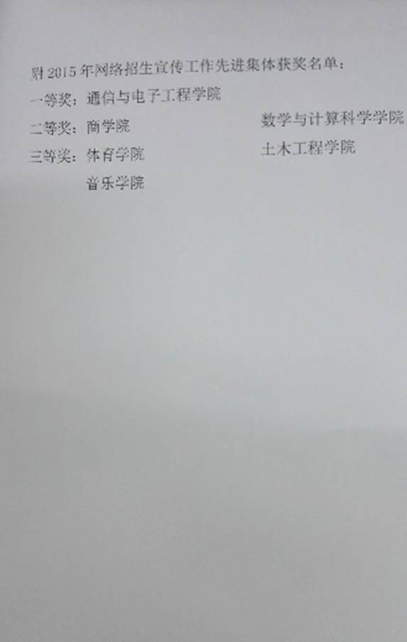 体育学院获学校2015年度网络招生宣传先进集体