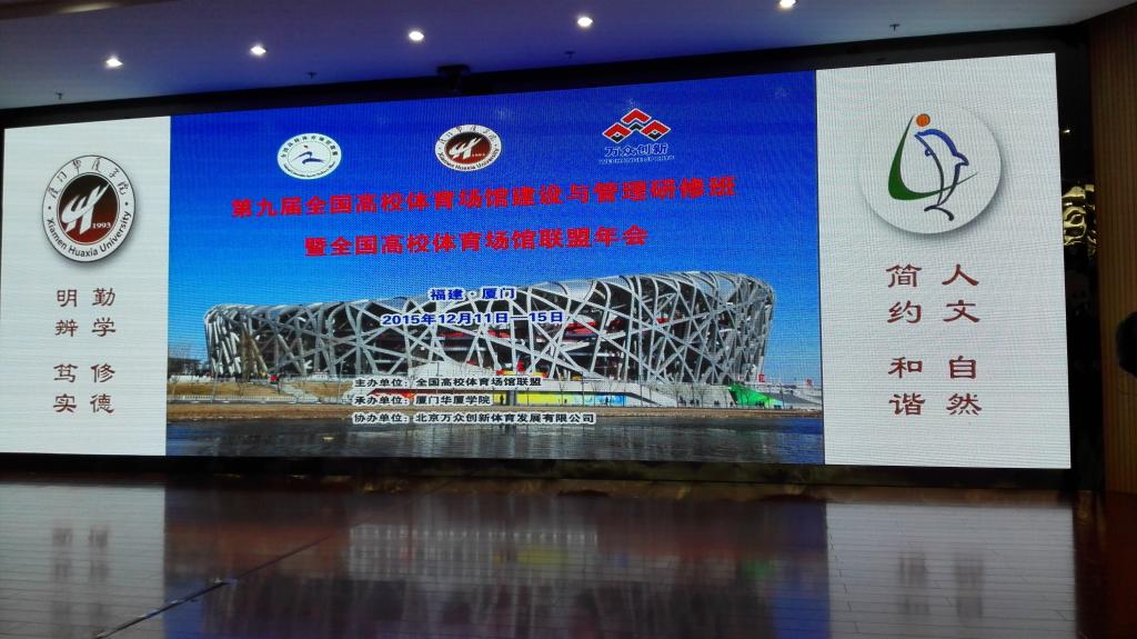 本次会议由全国体育场馆联盟主办,厦门华夏学院承办,全国高校参会人员近300人。会议上有来自华中科技大学场馆管理中心的孙竟波主任、西南交通大学体育部主任助理韦红雷博士、南京林业大学体育运动中心常继峰主任分别就场馆管理等问题作学术报告,参会的公司代表也就体育场馆的维护、清洁等作了详细的介绍。