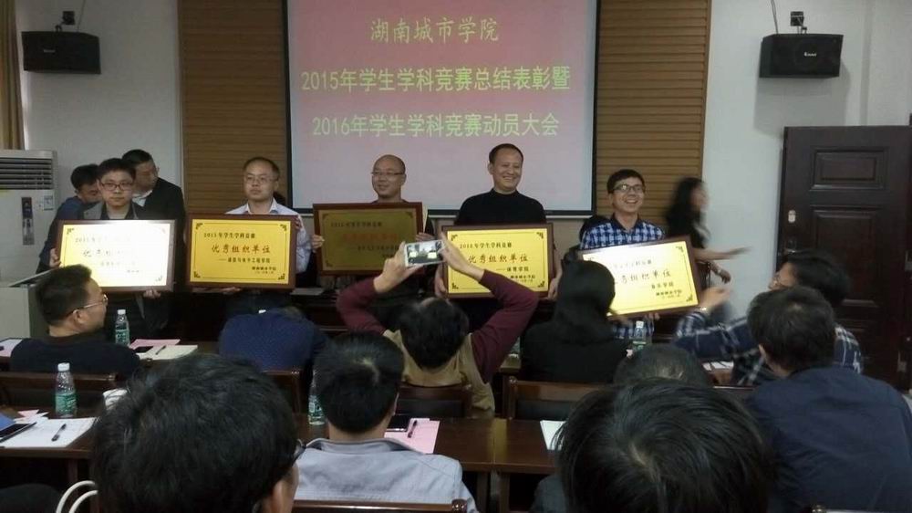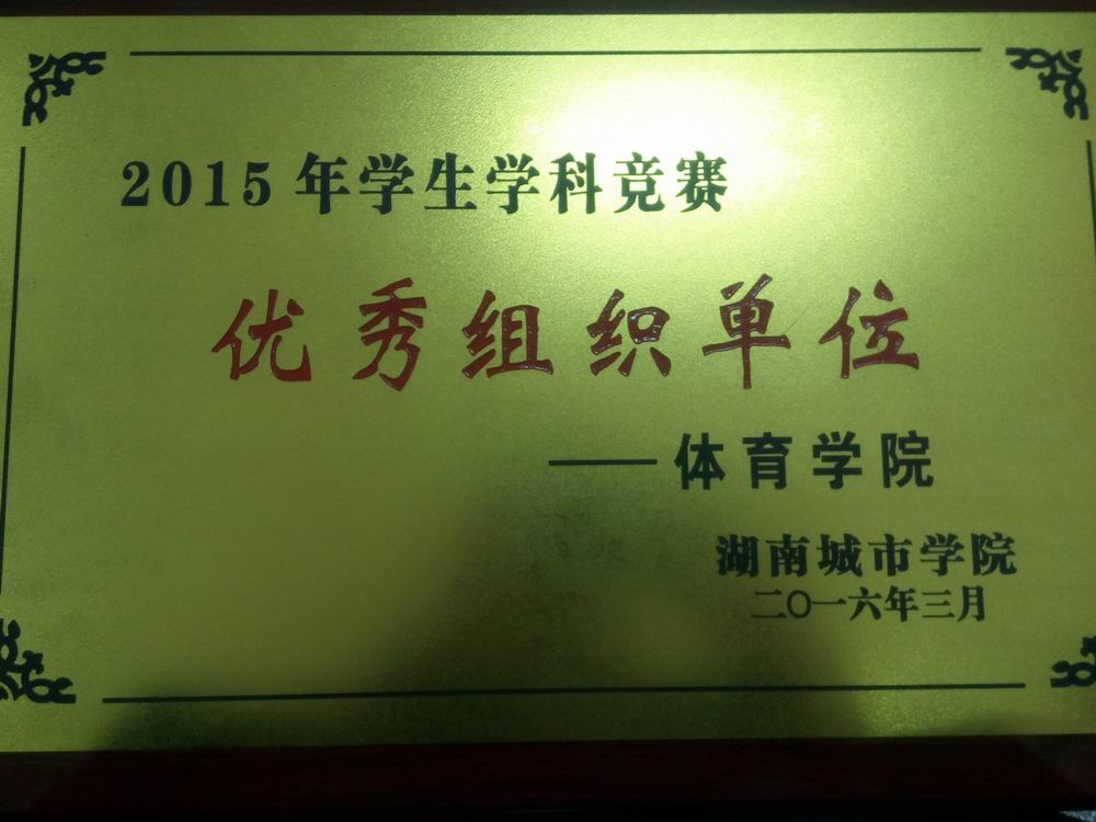 2016年4月11日,学校2015年学生学科竞赛总结表彰暨2016年学生学科竞赛动员大会在第二办公楼会议室召开。体育学院荣获2015年学生学科竞赛优秀组织单位。胡新民、杨清、王国明、龚宁、许进获优秀指导教师称号,会上,运训中心主任周振华作了学科竞赛工作经验交流。