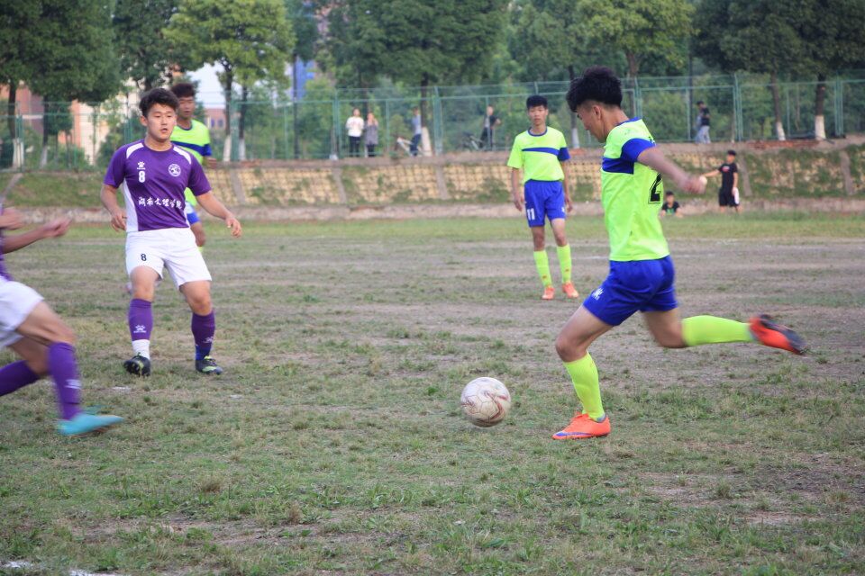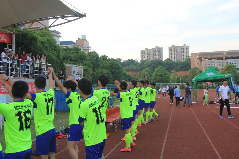我校足球队组建还不到一个月,队员们抱着学习的态度,立足拼搏,打出自己的战术水平与精神面貌。下午四点二十,比赛准时开始。开场后,我校队员发扬了积极进取,顽强拼搏的体育精神,在球场上渐渐占据了主动,上半场很快就以两球的优势领先。下半场,双方都做出了人员调整,湖南文理学院足球队稳住了比赛节奏,逐渐适应了我校的打法,开始展现出自己的水平。在临近比赛时,我校队员禁区手球为例,被判点球,文理学院扳回一球,最终比分锁定在了2:1。