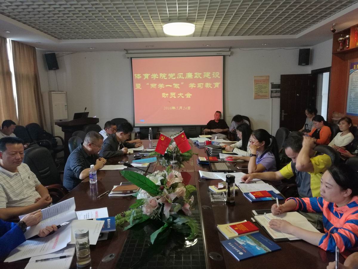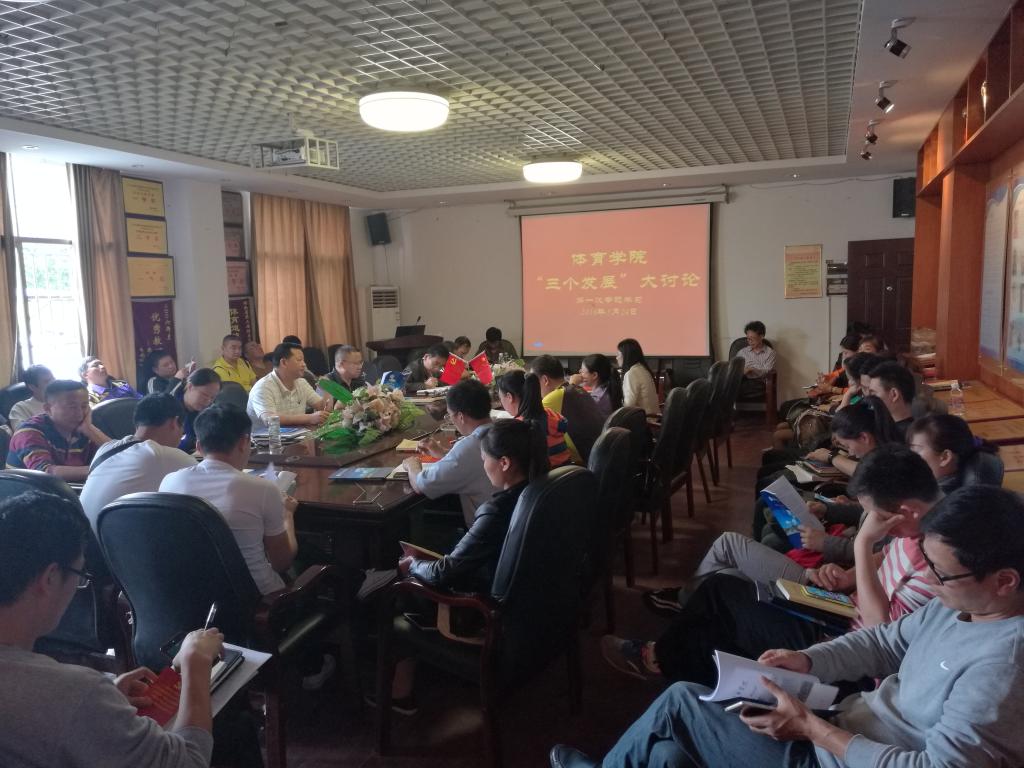 (通讯员 郭羽)5月24日中午,体育学院在学院会议室举行了“两学一做”暨“三个发展”大讨论动员大会。党总支书记熊兴吾、院长唐吉平分别就“两学一做”学习教育活动和学校“三个发展”大讨论作动员。学院全体教职工、学生党支部书记参加了会议。会议由党总支副书记郭羽主持。
