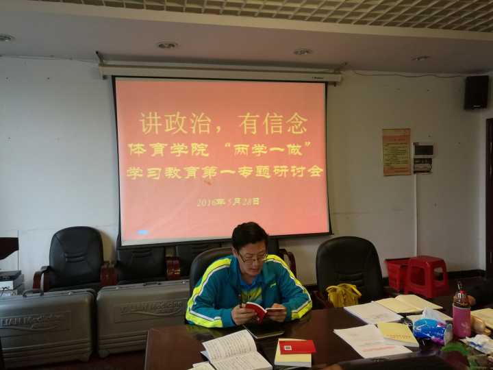 (通讯员 郭羽)5月28日上午,体育学院党总支在学院会议室会议室举行了 “两学一做”“讲政治、有信念”第一专题集中学习。学院全体教职工党员,学生党支部书记参加了学习,学习由教工党支部书记张志辉主持。