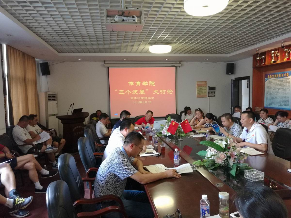 (通讯员 廖玉美 王雄鹰)6月7日下午2:30,校长李建奇率应用与创新中心主任吴宏斌、科学研究与学科建设处副处长龚斌、教务处向博毅深入体育学院参加“三个发展”大讨论专题学习活动。