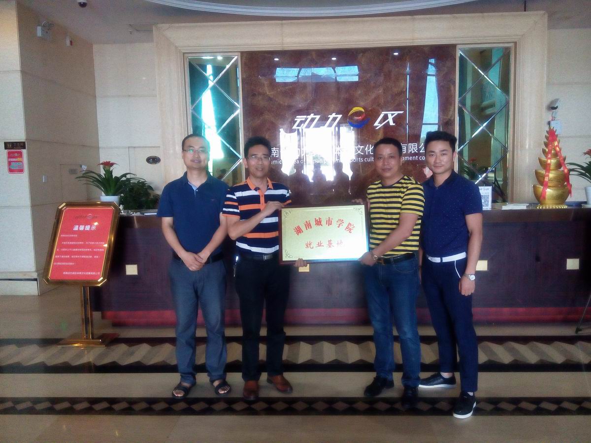 2016年6月29日下午3:00,体育学院党总支副书记郭羽、学校招生就业处办公室主任王立刚一同前往湖南省动力驿区体育文化发展有限公司签订共建毕业生就业基地协议书并挂牌,至此湖南省动力驿区体育文化发展有限公司已成为我校的毕业生就业基地。