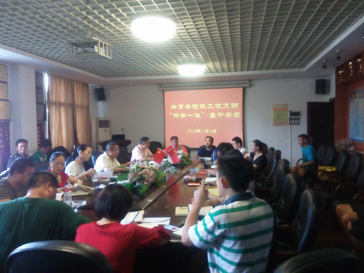 党中央决定,2016年在全体党员中开展“学党章党规、学系列讲话,做合格党员”学习教育实践活动,为认真贯彻落实中央、省委、省委教育工委精神,切实开展好学校“两学一做”学习教育,学校党委下发了湘城院党发〔2016〕18号关于印发《关于在全校党员中开展“学党章党规、学系列讲话,做合格党员”学习教育实施方案》的通知,体育学院党总支按照学校党委文件要求,结合学校“两学一做”集中学习讨论日程安排表,学院教工党支部在7月9、10、11日三天集中开展了“两学一做”学习教育实践活动。