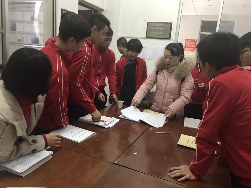 体育教育系主任龚莹莹在检查《实习手册》