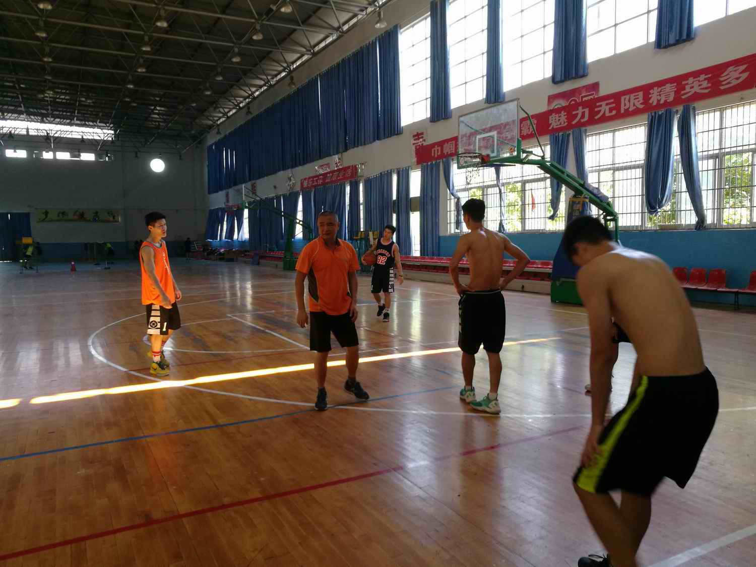男子篮球队在集训中
