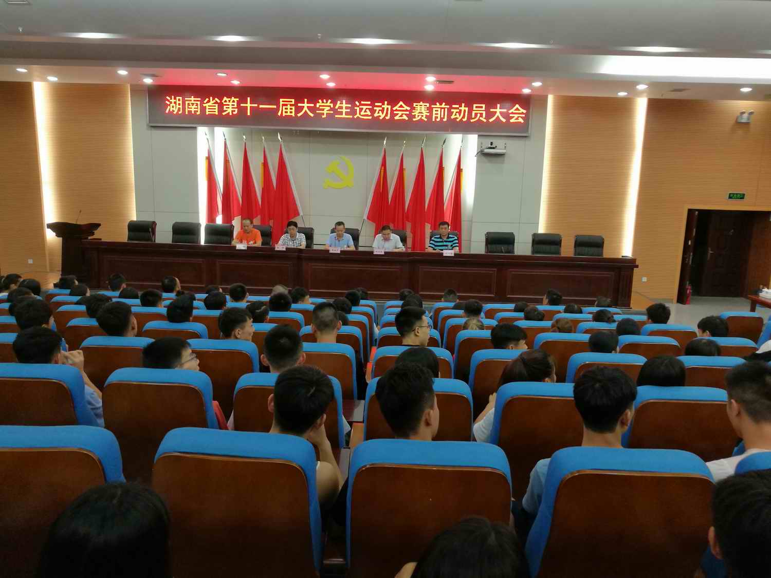 (通讯员 郭羽)9月9日晚上7:00,我校出征湖南省第十一届大学生运动会赛前动员大会在图书馆报告厅举行。副校长夏宏宇、党委委员副校长郑卫民、教务处处长张伟以及体育学院党政班子成员出席了动员大会,全体教练员和121名运动员参加了动员大会。