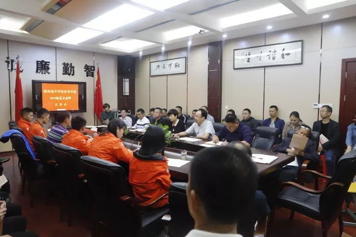 副校长童银湘介绍了学校近期教育教学情况以及学校大艺体工作开展情况,介绍了部分年级和班级工作情况;学校对大艺体工作高度重视,对湖南城市学院本届实习队伍充满殷切希望,希望全体实习成员积极开展工作,配合年级组和班级做好学生教育管理,给校园带来青春的活力和朝气。