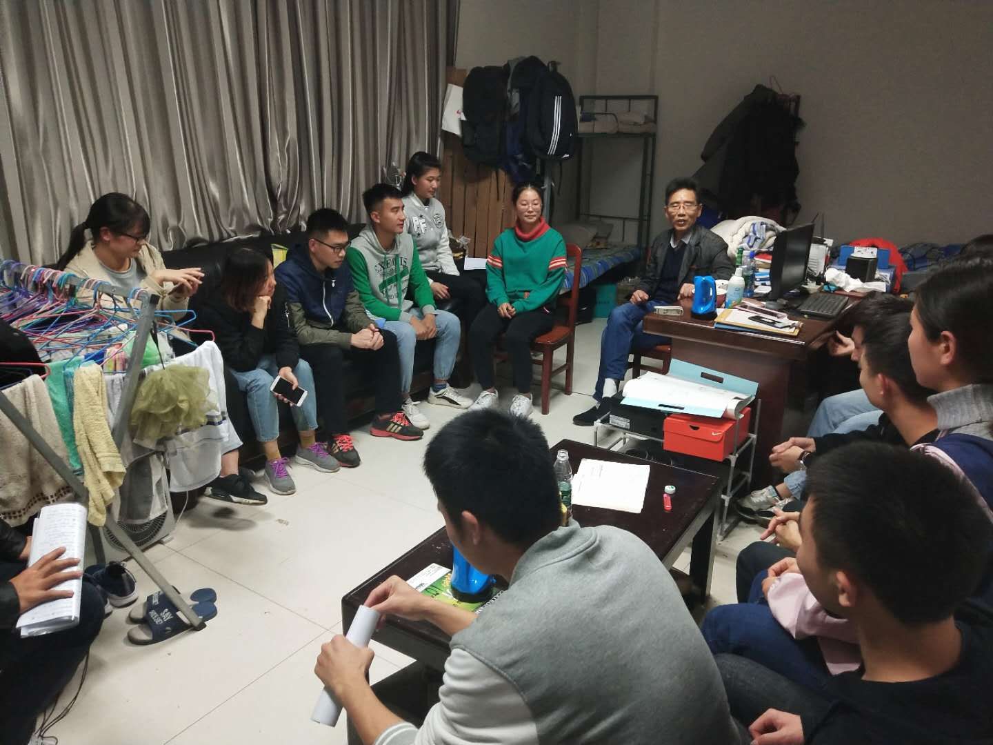10月21日晚上8:00,体育学院2019届毕业生考研一班学生座谈会在图书馆值班室举行。学院党总支副书记、副院长郭羽出席座谈会。
