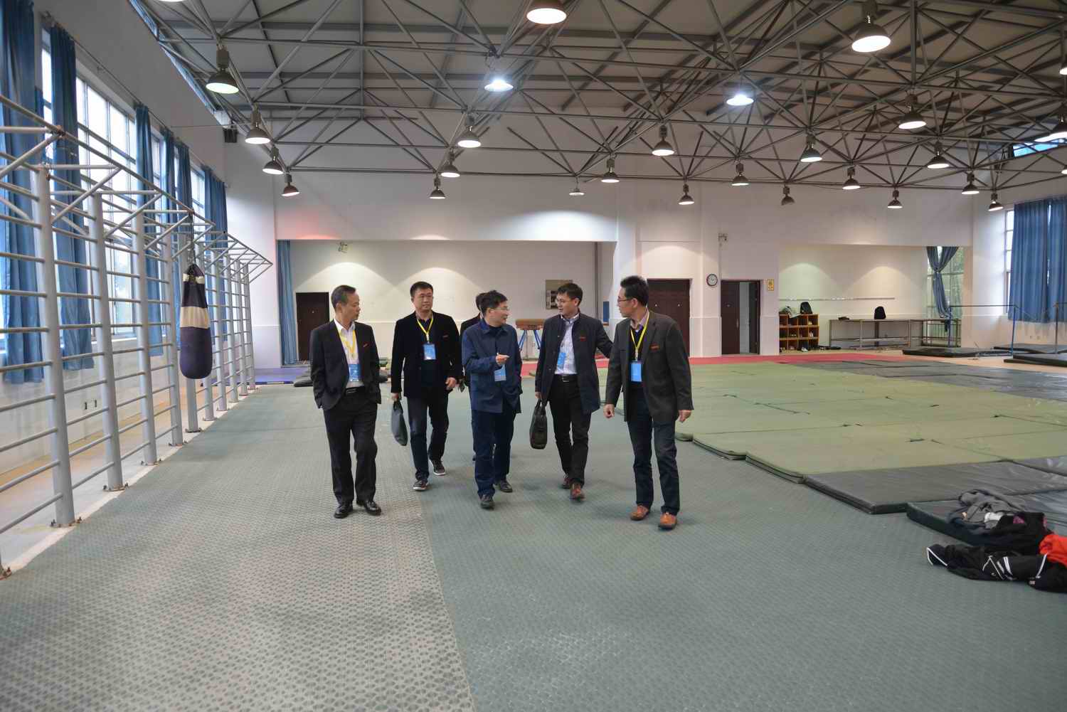 会后,易兵教授在学院领导班子的陪同下,实地察看了学院的体育教学场地和教师的上课情况。