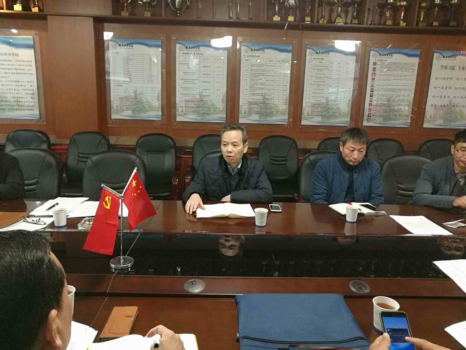 最后,雷存喜副校长作总结发言,他说,体育学院办学历史悠久,办学成效显著,办学特色优势明显,学科建设、专业建设、人才培养质量,科学研究等方面取得了辉煌的成绩,目前学院正处于发展的转折点,要坚定信心,再创辉煌。针对体育学院目前情况从宏观层面提出了以下要求:一是要认清形势,加强学习,全面领会新时代本科教育的重要性;二是要全员参与到本科教育教学中来;三是要认真研究,细化、优化《人才培养方案》;四是要扎实推进课堂革命;五是要注重教师能力的培养与提升。同时,雷存喜副校长结合学院的实际情况作了具体部署:一是“双万计划”中,学院专业力争要有一个,特色课程要取得突破;二是推进大学体育教学改革,实现“提高学生体质、培养运动技能、形成锻炼习惯,重视身心健康”目标;三是创新实践教学环节;四是加大师资队伍的引进力度与内培力度;五是打造特色品牌项目;六是积极开拓就业市场,提高毕业生的就业率和就业质量;七是改革教师的评价体系,将教学的过程管理作为教师和学生增负的条件。