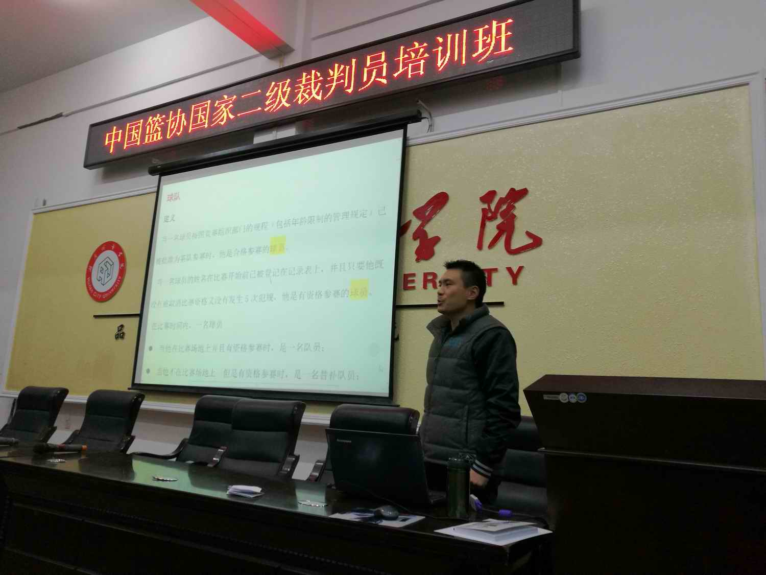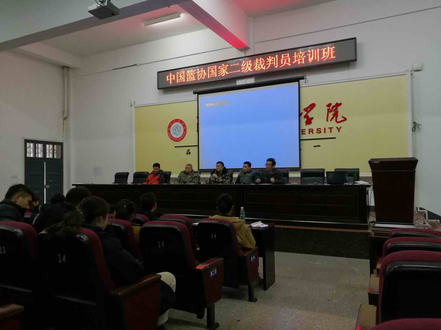 (通讯员 郭羽)12月31日上午9:00,中国篮协(益阳站)篮球二级裁判员培训开班典礼在我校电信楼视频会议室举行。益阳市篮协秘书长徐哲、体育学院党总支书记薛铁军、党总支副书记副院长郭羽、体育学院篮球专选老师陈志宏、常允涛以及全体学员参加了开班典礼。郭羽主持开班仪式。