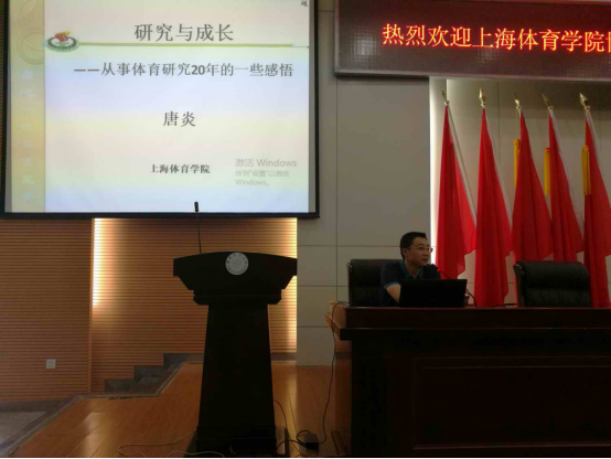 唐炎教授以“研究与成长——从事体育研究20年的一些感悟”为主题,将自己多年来从事体育学术研究的宝贵理论与经验与在场师生不吝分享。首先,唐教授从“科研”与“研究”的异同谈起,详细论述了人文研究、社会研究与自然科学研究的关系。紧接着唐教授提出,研究的核心任务是构建文本,而构建文本的过程所遇到的最大瓶颈是研究者的文化底蕴,因此他认为成功进行研究活动要具备三个重要前提:“识字”、“读书”、“建立知识结构”;“识字”要“寻字义之宗”,“读书”要先把书“读厚”,再将书“读薄”,撰写读书笔记是关键,建构知识结构要本着“求事实、寻规律的原则,要将本体知识、扩展知识、工具知识融汇贯通运用,不断扩大三者的交集,知识交集的增加过程就是学术建构逐渐成熟的过程。最后,唐炎教授用三句话告诫今后的研究过程:“本体知识缺乏则研究无物,扩展知识缺乏则研究无味,工具知识缺乏则研究无形。”他希望体育学院师生能不断加强专业知识与文化底蕴,将体育研究质量不断提高。