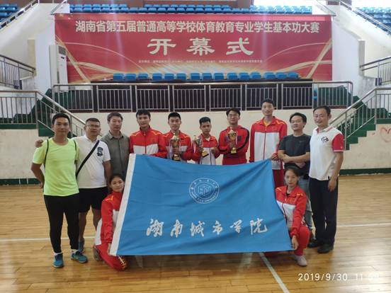 我校体育教育专业2016级学生肖芝兰、肖祥彤、彭桥萍、周艺文、钟瑶、刘灿、黄文兴7名参赛队员在体育学院副院长胡科领队的指导保障团队带领下,团结协作、克服困难、勇敢拼搏,取得了团体总分、基础理论知识与教学技能类的团体两个三等奖,田径项目第三名的优异成绩。