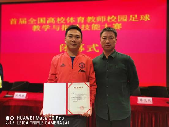 此次大赛是全国高校体育教师的专项教学与指导技能大比拼,分为课程教学组(从事高校足球课程教学的教师)和竞训指导组(招收高水平足球运动员学校教师)。我校李伟老师参加的是课程教学组的比赛,参赛选手有来自清华大学、浙江大学、上海交通大学、华中师范大学等高校的85位教师。课程教学组的竞赛内容为网络评审与现场测试两个环节,网络评审包括教学设计与教学实践,教学设计与教学实践分说课和课堂教学两部分,其中说课部分不超过5分钟,课堂教学时长为15分钟,两项均需拍摄视频,且不得剪辑合成。现场测试包括体能测试和专项技能两项。参赛教师的最终成绩为各项成绩折算后的总和,本次共评出了一等奖13人,二等奖25人,三等奖30人。我校李伟老师作为一名共产党员,不忘初心,牢记人民教师的使命,在比赛中克服困难,顽强拼搏,取得了教学设计比赛第七名,总成绩三等奖的优异成绩。