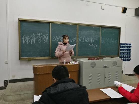 会前,郭羽副院长召开各答辩小组组长会议,统一规范答辩要求,对答辩老师提了五点要求:一是每一位答辩老师依据学生开题材料报告向答辩学生提问,问题不能少于3个,答辩秘书记录提问与学生回答问题的内容不少于3个;二是老师所提出的问题或给予的建议要有针对性,要紧扣学生毕业论文(设计)题目内容,要有利于学生论文(设计)的完成;三是控制好答辩时间,每位学生陈述论文(设计)的时间不超过三分钟,陈述的内容主要包括选题的意义、研究现状、主要研究内容、研究方法等,答辩小组专家进行提问并现场给予指导,时间控制在五分钟左右,每位学生答辩总时间不超过十分钟;四是答辩结果要公开、公平、公正,不能有意降低标准或故意为难学生;五是每组秘书收集齐全开题答辩的存档材料,组长于放假之前签好字,及时交龚勋老师保存。社会体育指导与管理专业系主任汤华、体育教育系主任许进对参加答辩的学生做了强调:一是要沉着冷静,不要急躁;二是要充分相信自己,回答老师的提问不慌不忙;三是要对答辩老师提出的意见和建议认真做好记录,回去以后在指导老师的指导下进行修改,四是要按要求及时上交相关材料。