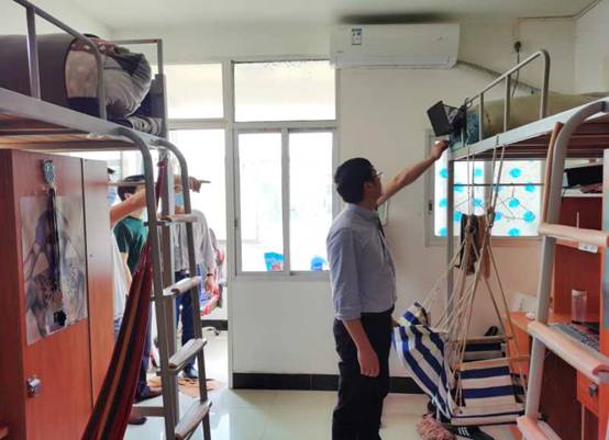 为贯彻落实罗书记的讲话精神,4月29日上午,在学院党总支书记龙文的带领下,副院长(主持工作)胡科、副书记何冬林、副书记副院长郭羽、学工办主任邓荣、辅导员王雄鹰深入到学生宿舍,亲自为学生宿舍开窗户,并将嗮被子、扫卫生做了详细的部署安排,五一节之前,学工办将组织班主任、辅导员完成嗮被子、扫卫生工作。