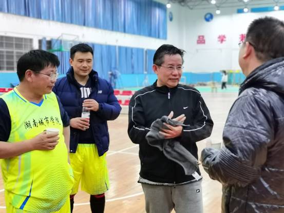 (通讯员 郭羽)为促进全民健身,建设健康中国作出积极贡献,2020年12月18日晚上,益阳市委书记瞿海一行在湖南城市学院篮球馆与城院教职工进行了一场友谊篮球比赛,旨在促进益阳全民健身活动.湖南城市学院党委书记罗成翼、党委副书记校长李建奇参加了比赛,学校部分教职工和学生观看了比赛,在比赛中,瞿海书记、罗成翼书记、李建奇校长挥汗如雨,以榜样带动益阳人民积极参与到全民健身活动中来,为建设健康中国身体力行。