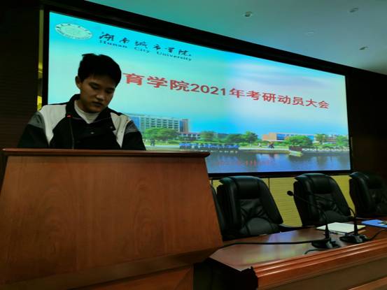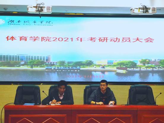 (通讯员 郭羽)体育学院2018级学生考研工作从2021年3月6日启动,经过多次的摸底、发动,已有88名同学确定备考研究生,为进一步强化学生的考研意识,稳定考研队伍。体育学院于4月15日晚上7:30在建规楼121教室召开了2018级学生考研动员大会。学院副院长(主持工作)胡科教授做动员讲话,参加会议的有副书记何冬林、副书记、副院长郭羽、考研导师和全体考研学生,会议由副书记、副院长郭羽主持