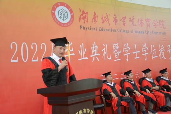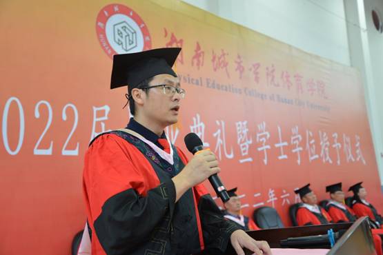 (通讯员 王雄鹰)2022年6月17日上午9:00,体育学院2022届毕业典礼暨学位授予仪式在体育训练馆举行,党委书记郭羽主持仪式。