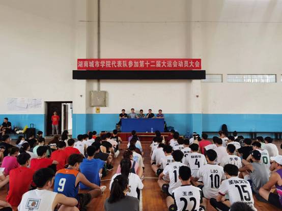 (通讯员 许进)2022年6月23日下午,湖南省第十二届大学生运会暑期集训动员大会在体育学院篮球馆举行,参加动员大会有体育学院党委书记郭羽、院长胡科、副院长欧岳山、副院长许进以及各个代表队教练员和全体运动员,大会由许进主持。