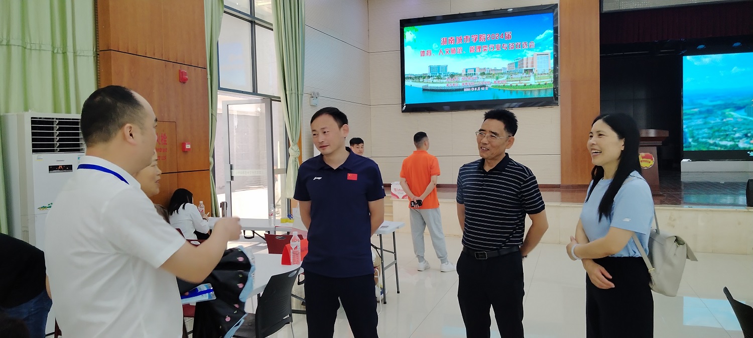 体育学院高度重视2024届毕业生就业工作,提早谋划、提前部署就业工作,在访企拓岗的基础上,主动对接用人单位,为毕业生与企业搭建供需交流平台,进一步拓宽就业渠道。18日上午,体育学院党委书记郭羽、院长李志宏、党委副书记匡艳群、副院长许进、学工办主任兼就业专干邓荣均到招聘会现场与用人单位沟通交流,了解用人单位需求,对学院开展就业工作进行指导。党委书记郭羽表示,学院要主动对接社会需求,采取灵活方式,订单式培养,及时调整人才培养模式,做好就业这篇大文章。学院院长李志宏表示:“只要有志向就会有事业,只要有本事就会有舞台。当前,大学生就业竞争压力较大,我们需要积极引导学生树立务实择业观,鼓励他们勇于到基层一线贡献自己的青春力量,展现城院学子的担当与责任。”