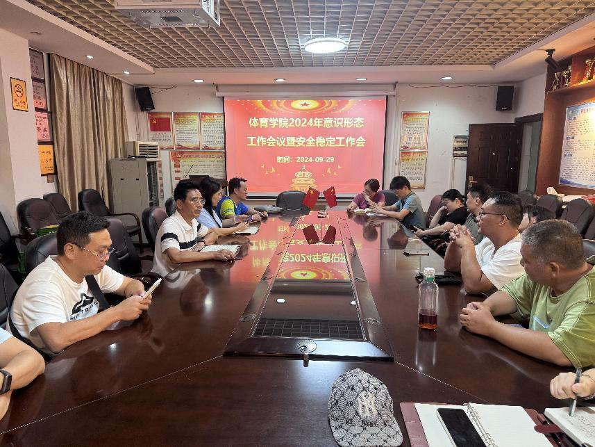 (通讯员 郭昊晴)9月29日,体育学院在学院会议室召开了2024年第三季度意识形态风险研判会暨安全稳定工作会议,学院班子成员、党委委员、辅导员和全体班主任参加,会议由学院党委副书记匡艳群主持。