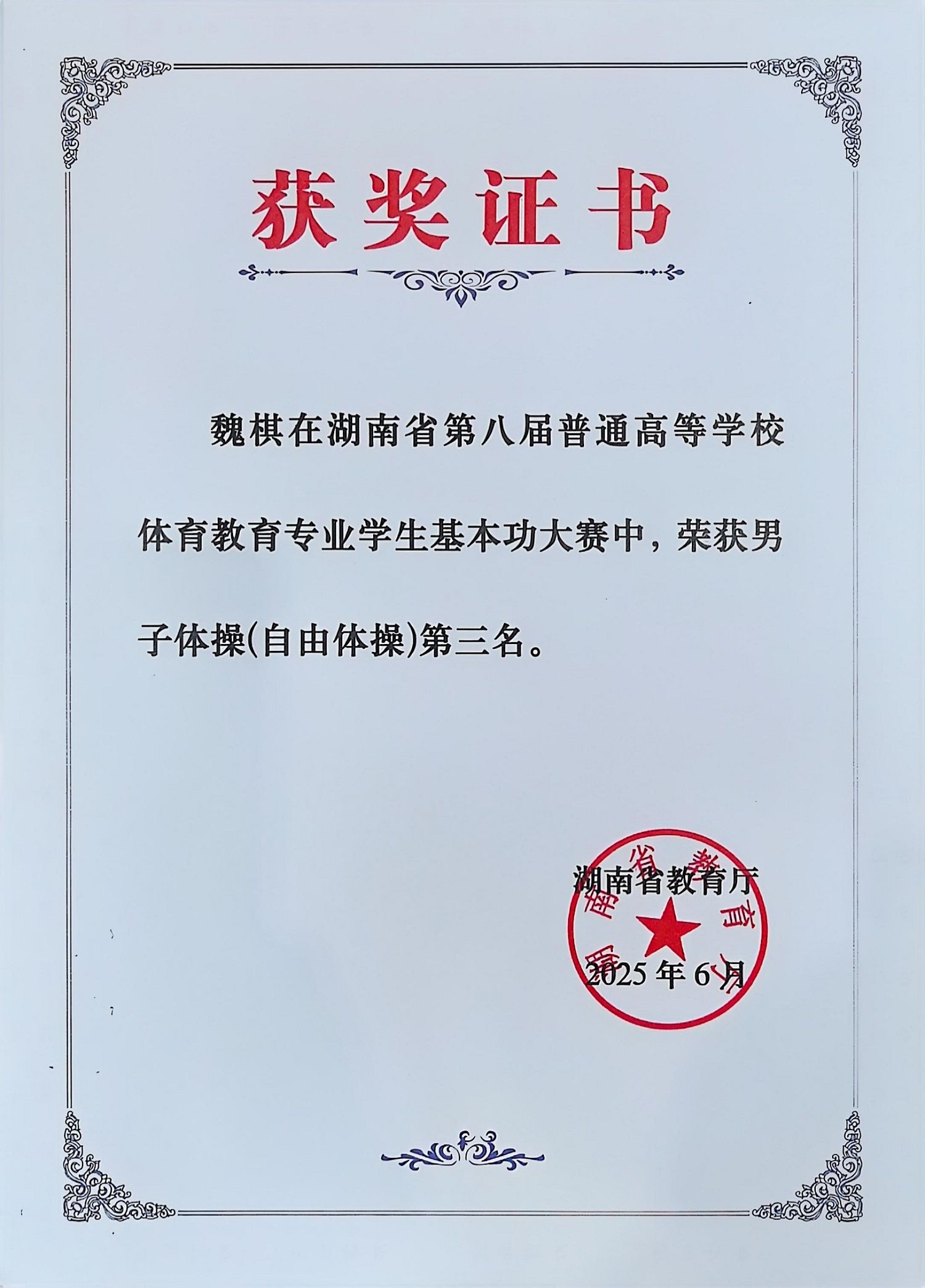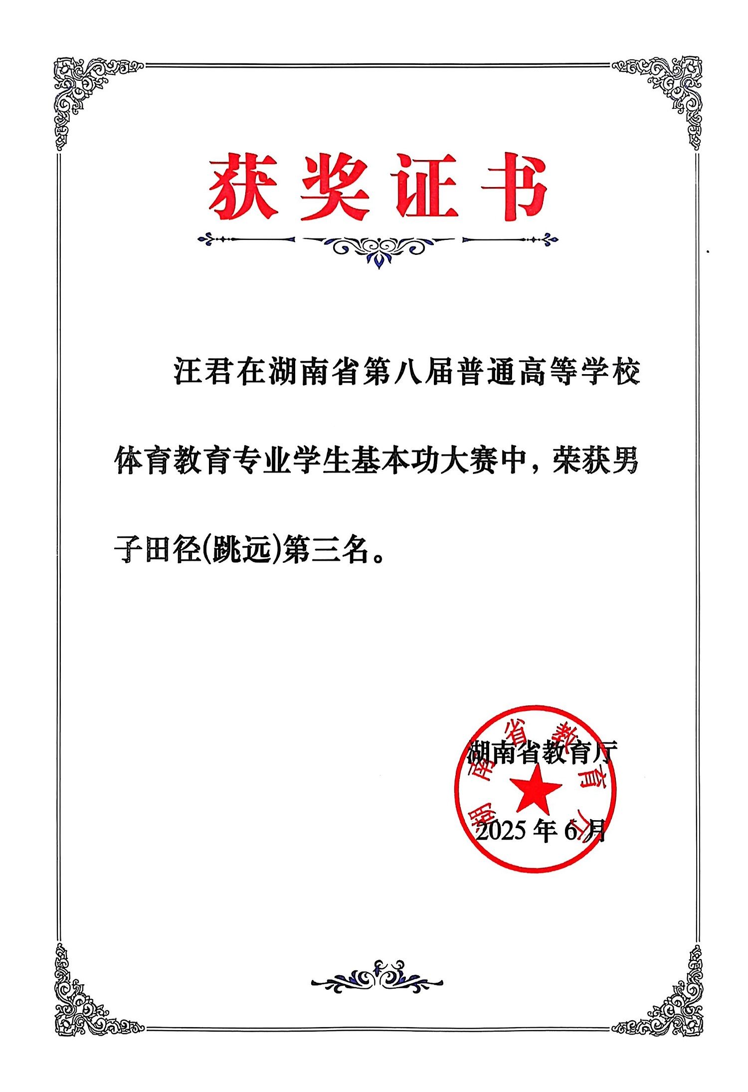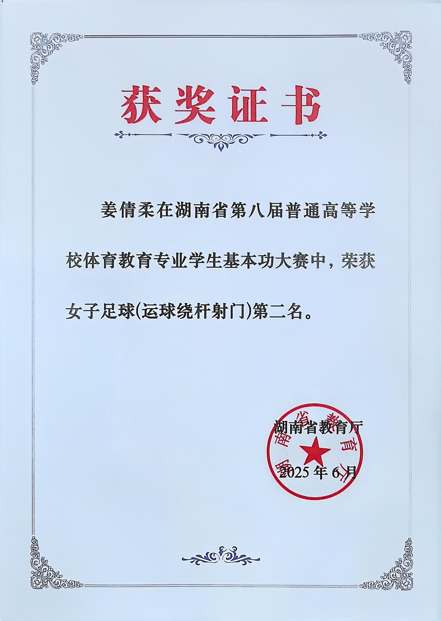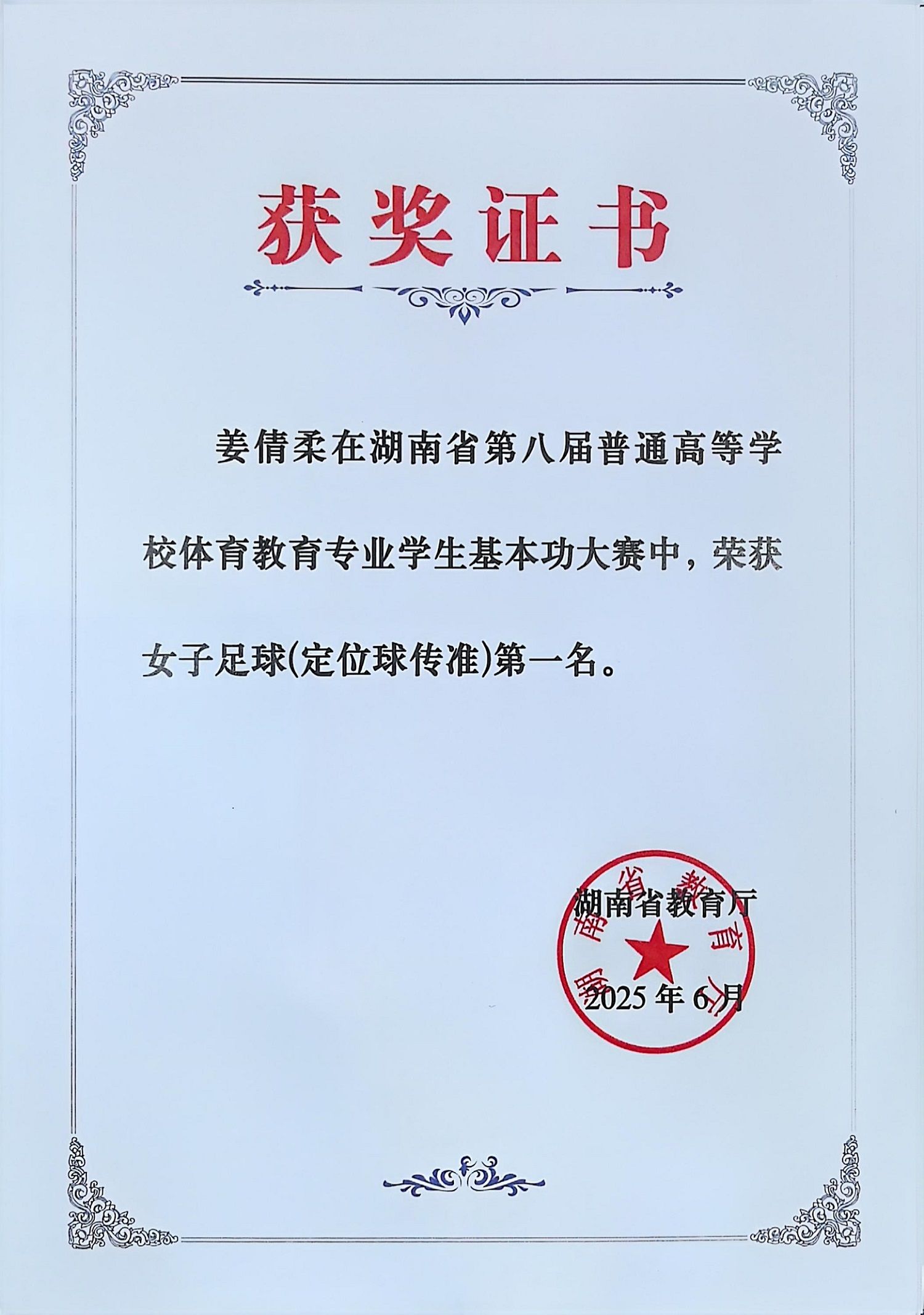(通讯员 龚莹莹)近日,湖南省第八届普通高等学校体育教育专业学生基本功大赛在湖南师范大学举行,湖南城市学院代表队从全省17所高校的119名精英选手中脱颖而出,勇夺团体总分三等奖,单项团体足球第二名、体操第四名、田径第七名,姜倩柔获个人女子足球(定位球传准)第一名和女子足球(运球绕杆射门)第二名、汪君获男子田径(跳远)第三名、魏棋获男子体操(自由体操)第三名。