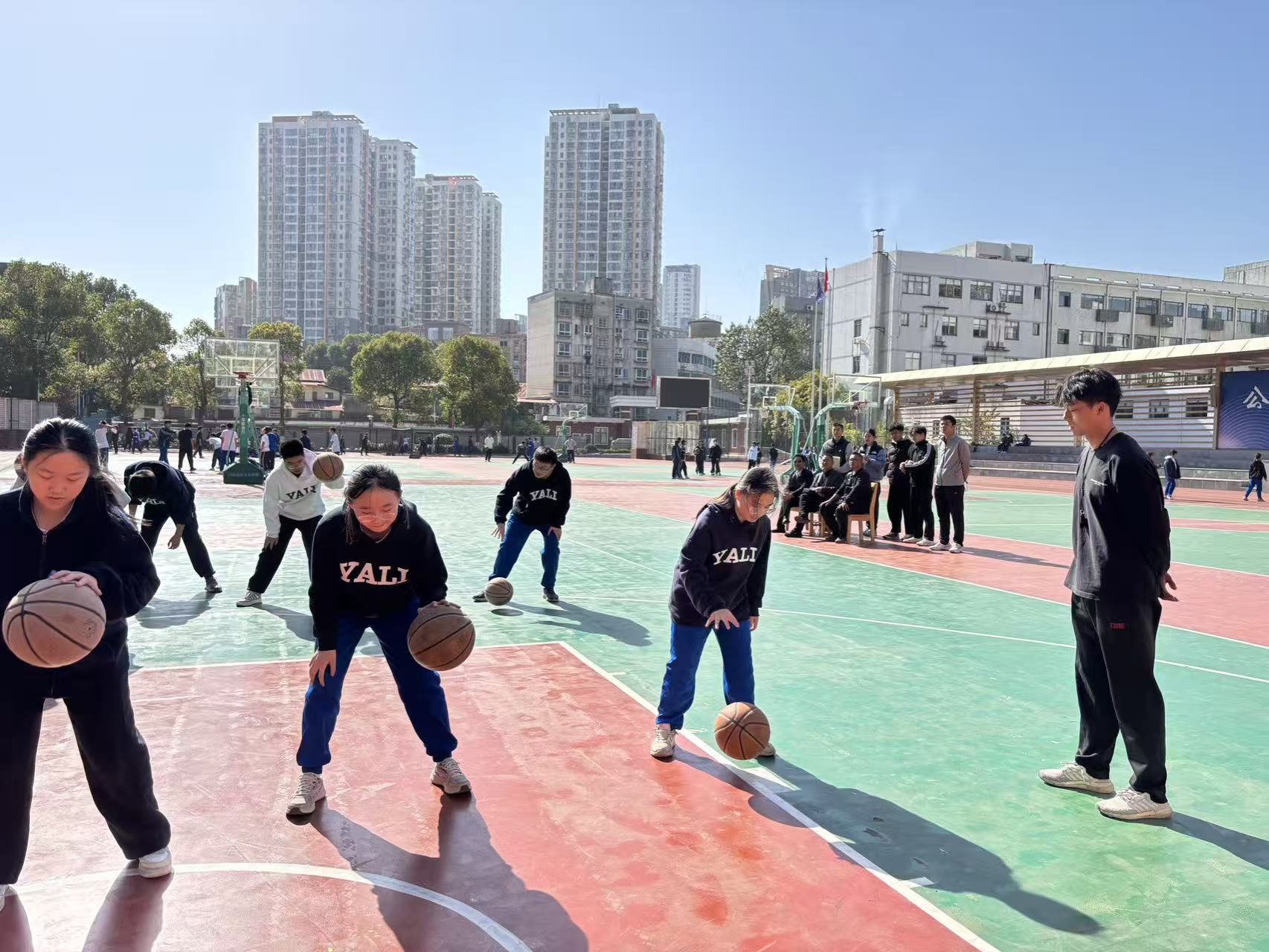 检查工作组一行先后走访了益阳市第一中学、益阳师专附属学校、益阳市朝阳学校、平高中学、长沙市协均中学、长沙市雅礼实验中学、宁乡实验中学、师大附中星少实验学校共八所实习单位。每到一处,学院领导与老师都深入教学一线,现场观摩了实习生的课堂教学实践,仔细查看了实习生的工作日志、教案编写、听课记录等实习材料,并与实习学校领导、体育组指导教师以及全体实习生进行了座谈交流。座谈会上,各实习学校领导与指导教师对我院实习生的表现给予了高度评价,他们普遍认为,体育学院实习生专业基础扎实,工作态度认真,能够迅速适应教学环境,积极参与课堂教学、课外体育活动组织、运动队训练等工作,展现了良好的精神风貌和职业素养。同时,实习指导老师们也结合一线教学实际,对实习生的技能提升、课堂管理等方面提出了宝贵的建设性意见。实习生们踊跃发言,分享了实习期间的收获与体会。他们表示,通过近期的实习,不仅将在校所学的理论知识应用于实践,提升了课堂教学能力、组织协调能力和解决实际问题的能力,更深刻体验了作为一名体育教师的责任与光荣,对体育教育事业有了更深的理解和热爱。他们也坦诚地交流了实习中遇到的挑战与困惑。学院领导认真听取了实习单位的反馈和实习生们的汇报,对各实习单位长期以来对我院教育实习工作的大力支持以及指导教师的悉心教诲表示衷心感谢,对同学们在实习中取得的进步表示欣慰,并强调教育实习是体育教育专业人才培养的关键环节,是锤炼教学技能、涵养师德师风的重要平台,鼓励同学们要珍惜宝贵的实习机会,虚心向指导教师学习,勤于反思,善于总结,不断提升自身综合素质;要严格遵守实习纪律和实习学校规章制度,注意安全,以饱满的热情和优异的表现为实习生活画上圆满的句号,为将来走上教师岗位奠定坚实基础。党委书记郭羽从师德师风建设的角度对实习生提出了期望,希望同学们牢记育人使命,以身作则,在实践教学中践行“学高为师,身正为范”的准则。