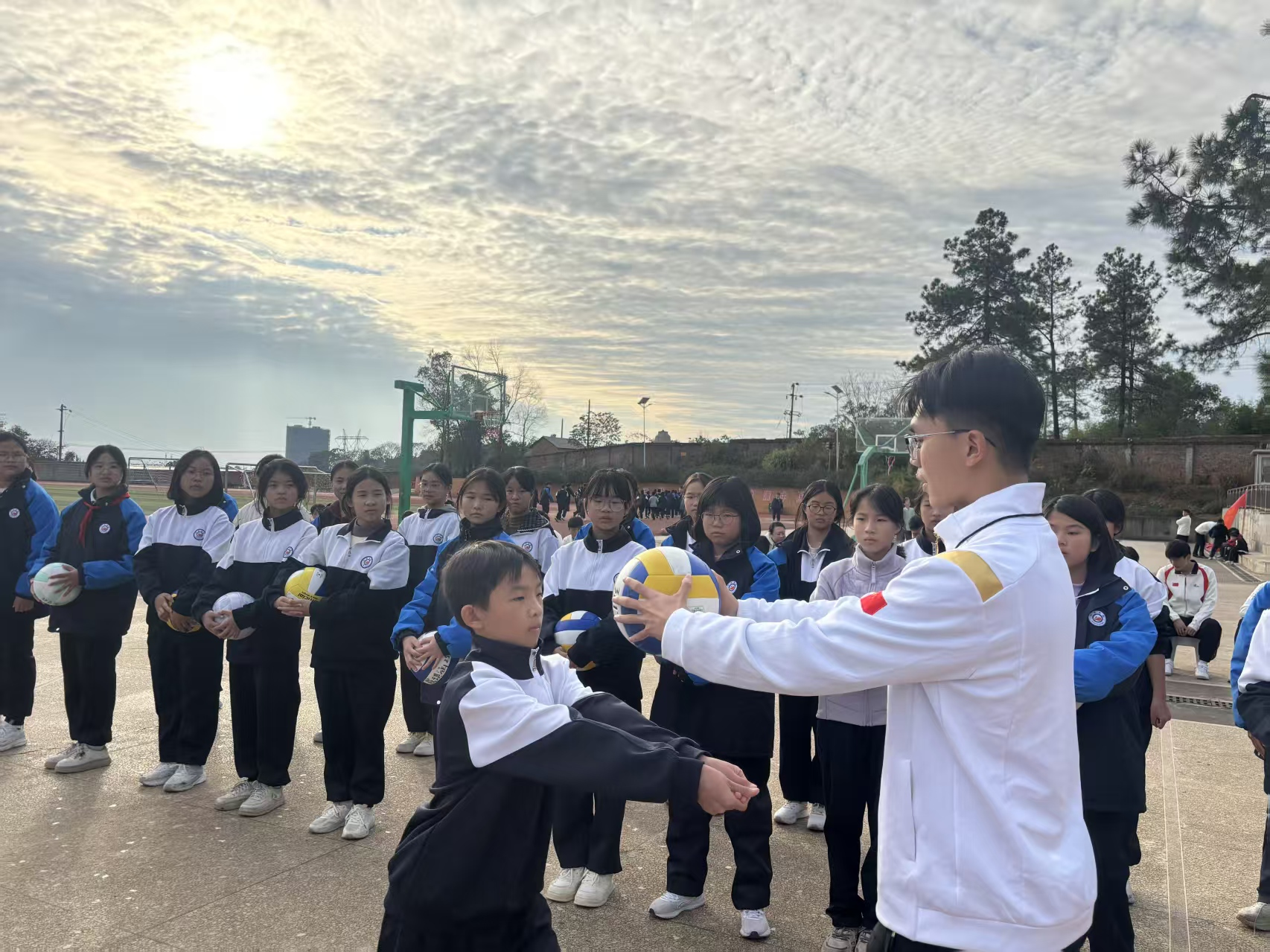 (通讯员 朱丹妮)为进一步掌握体育教育专业学生教育实习情况,确保实习质量,强化实践教学环节,11月16日至29日,体育学院党委书记郭羽、副院长许进、大学体育教学部副主任欧岳山、实习实训中心主任张志辉、体育教育教研室主任龚莹莹、教学督导组组长陈亮以及专业教师代表一行,组成教育实习中期检查工作组,分赴各实习基地学校,亲切看望慰问正在进行教育实习的2022级体育教育专业学生,并对实习工作进行了深入的检查与指导。