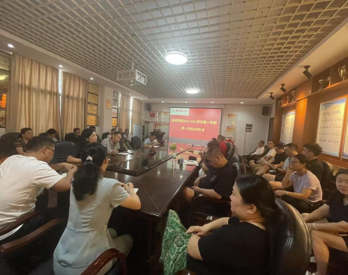 2025年9月7日,体育学院在体育馆一楼会议室召开了2025-2026学年第一学期第一次班主任例会。学院党委书记郭羽、学院党委副书记匡艳群及全体班主任参会,会议全面总结上学期学生管理工作,对新学期班主任核心工作进行部署安排,为新学期学生管理工作有序开展明确方向。