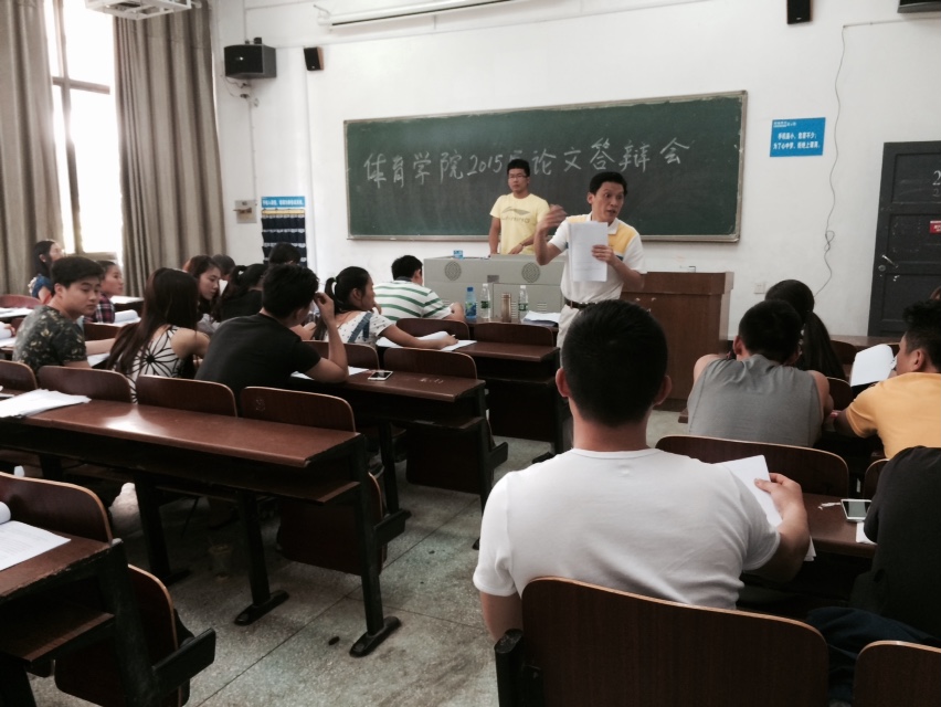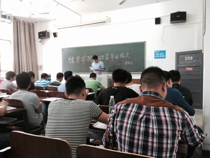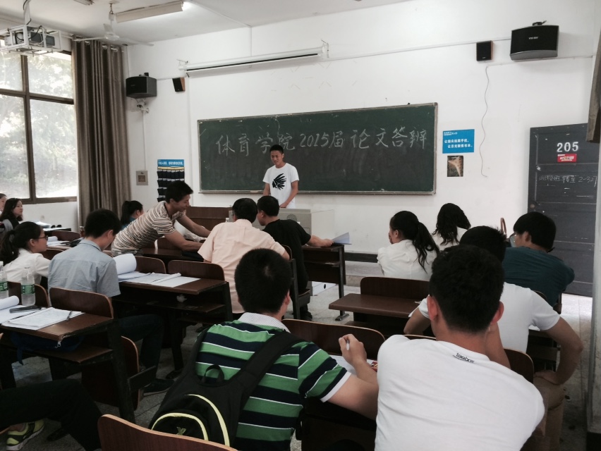 5月9日下午2:30,体育学院2015届毕业生毕业论文第一次答辩会在二教学楼举行。本次论文答辩设五个答辩组,共有104名毕业生参加,从下午2点半开始至下午6点半结束,历时4个小时。