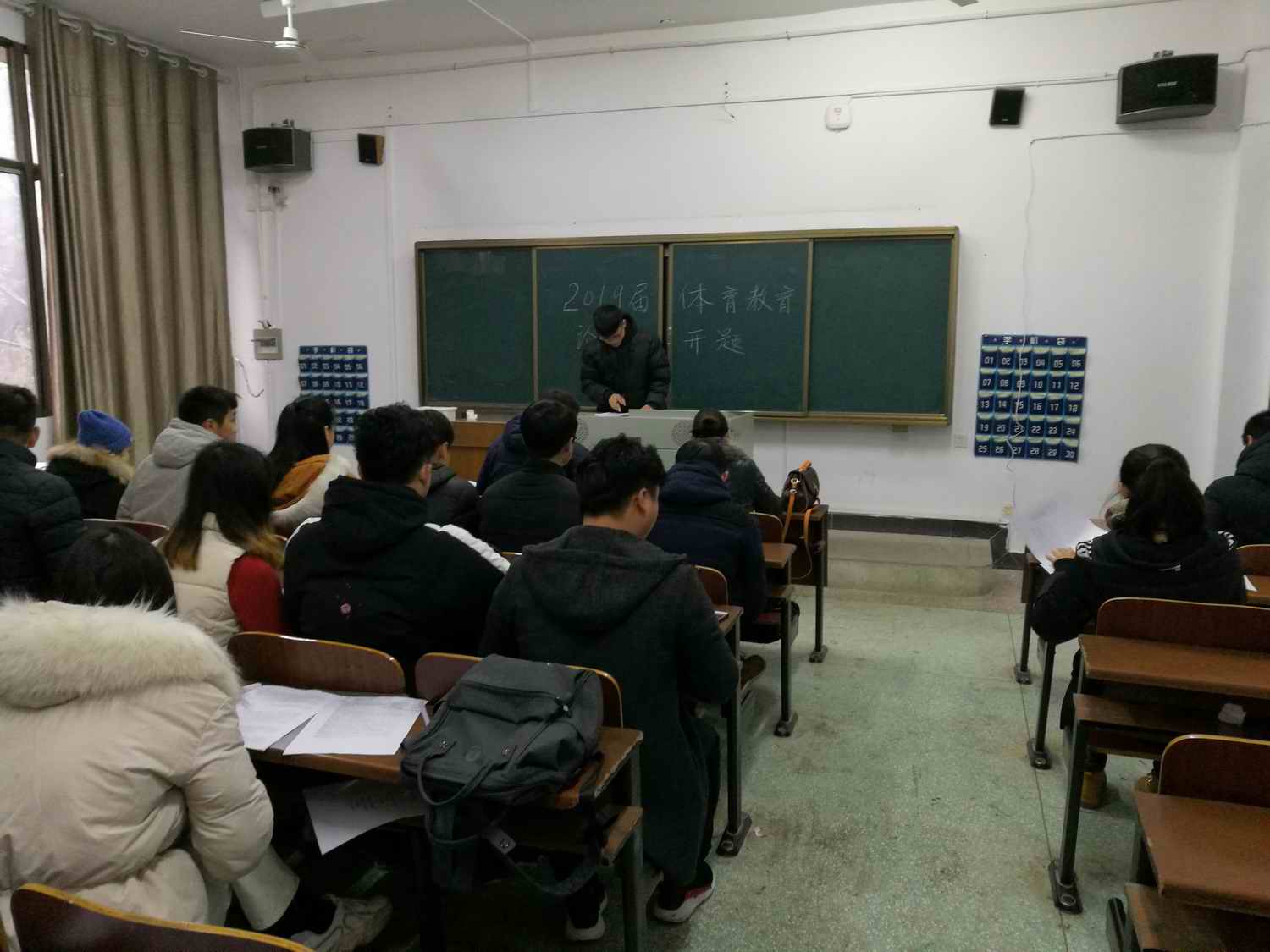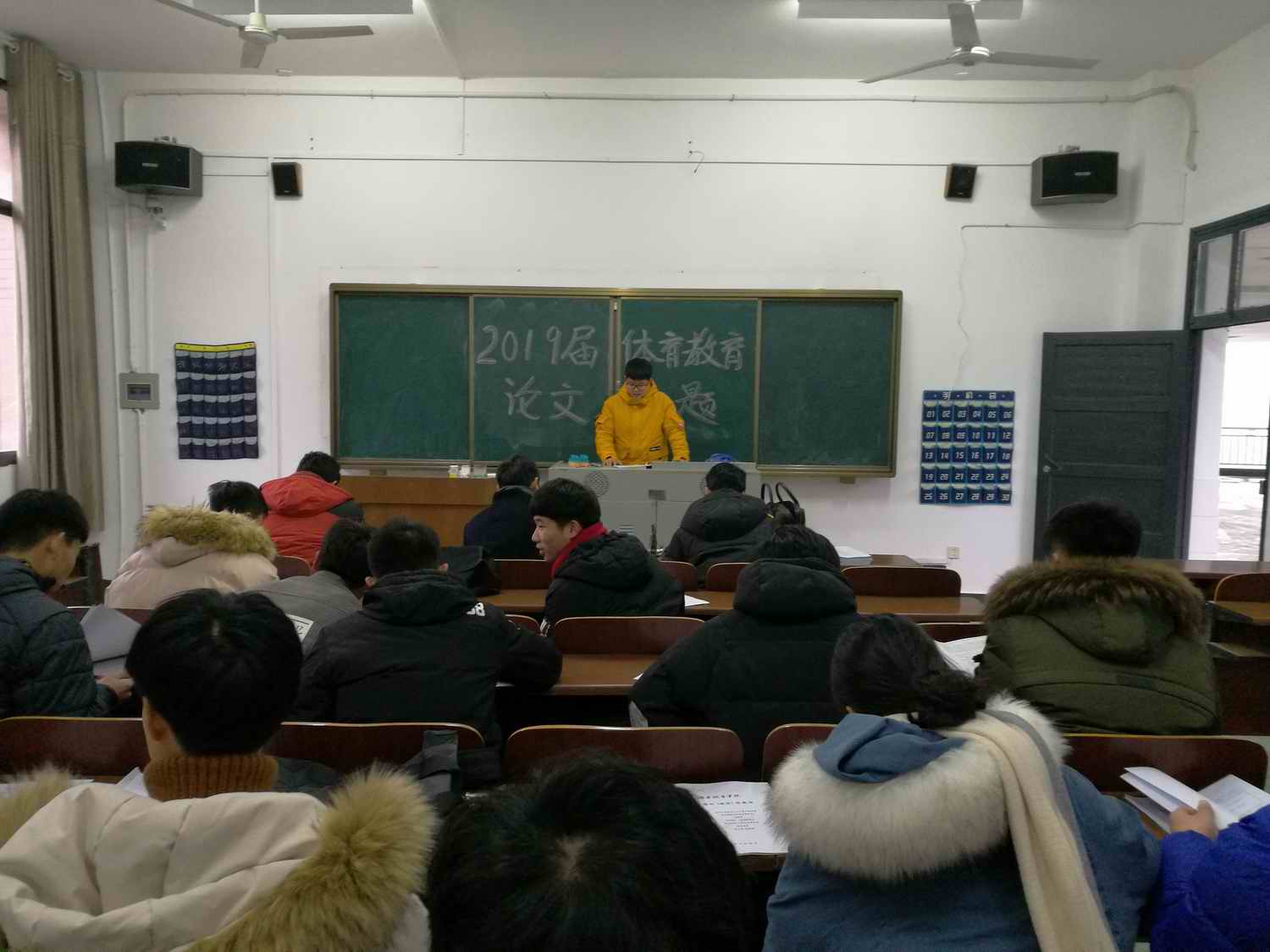 (通讯员 郭羽)2019年元月11日上午8:00,体育学院2019届毕业论文开题在2-201、2-202、2-203、2-204、2-205、2-206教室如期举行。参加本次开题答辩学生122人(三人创新项目),分成六个组,参加答辩的老师共24人,他们是:胡科、戴志鹏、周振华、欧岳山、刘鸥、燕成、常允涛、胡鹏、龚宁、唐海欧、王国民、李伟(代赵丹)、许进、裴学萍、彭宇轩、张志辉、杨清、朱丹妮、汤华、龚莹莹、任平、彭达伟、董喆、汪丽(代徐哲),每组答辩老师四人。