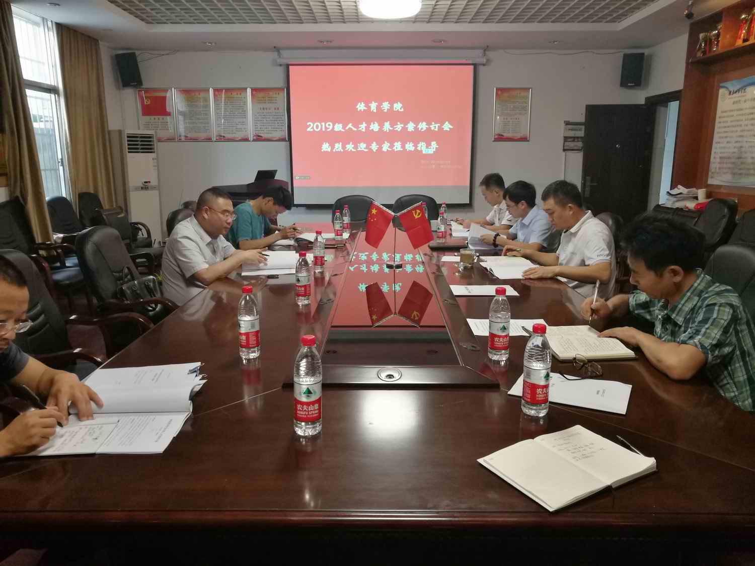 (通讯员 郭羽)7月9日下午15:00,体育学院2019版本科专业人才培养方案订定会在学院一会议室召开。学校党委委员副校长郑卫民、教务处处长胡拥军、副处长周建存、教学质量与评估中心评估科张振武、教务处尹琪、体育学院党总支书记薛铁军、副院长胡科、副书记副院长郭羽、体育教育系主任许进、社会体育指导与管理系主任汤华、教务秘书龚燕出席了会议。会议由副书记副院长郭羽主持。