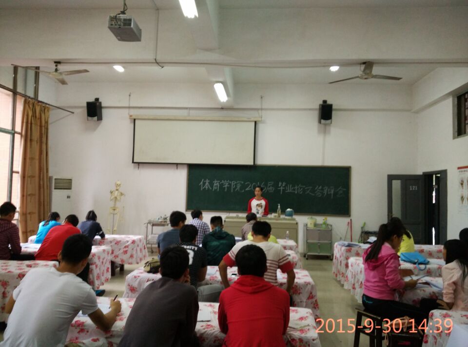 2015年9月30日下午2:30,体育学院2016届毕业生毕业论文答辩会在信息楼举行。本次论文答辩设二个答辩组,共有42名毕业生参加,从下午2:30开始至5:30结束。