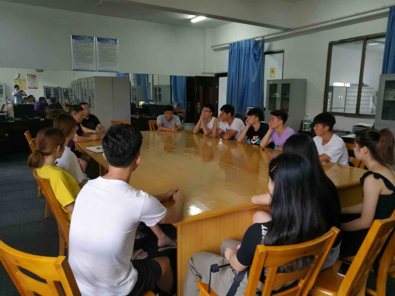 (通讯员 郭羽)2019年8月5日上午,体育学院2016级社会体育指导与管理专业在益阳力酷威尔、动力驿区实习队学生在学院二楼会议室召开了实习中期交流会。学院副书记副院长郭羽、社会体育指导与管理系主任汤华、带队老师霍赞东出席交流会,全体实习学生参加了交流座谈,会议由系主任汤华主持。