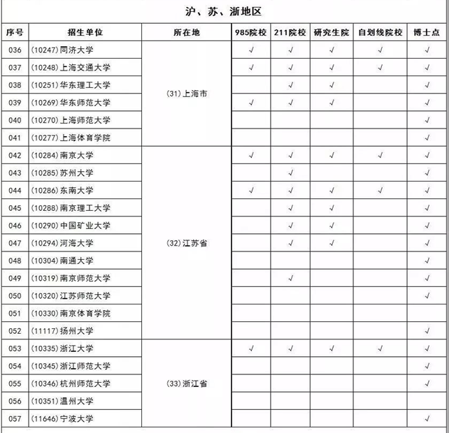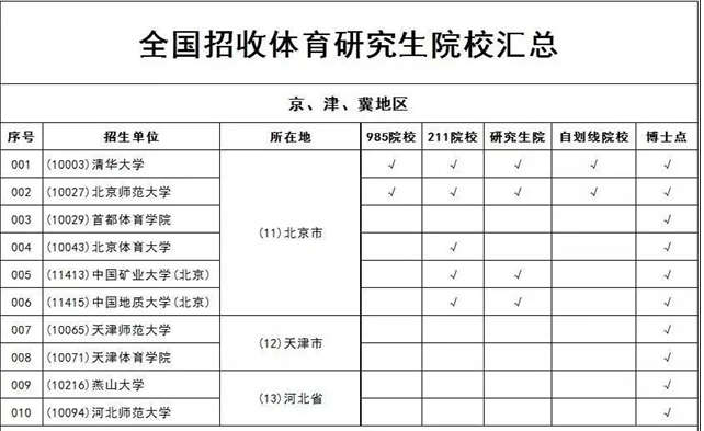 全国招收体育研究生学校汇总