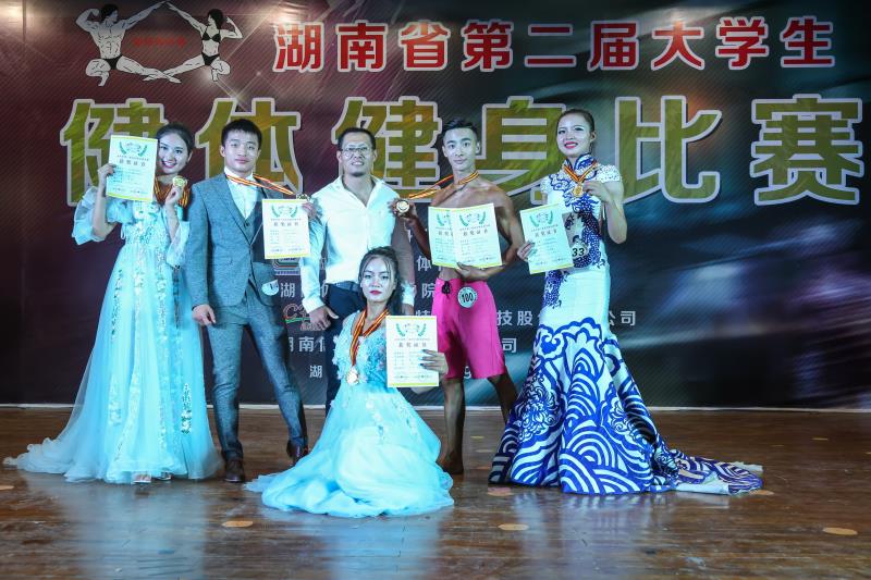 (通讯员 郭羽)由湖南省健身协会、湖南省学生体育协会主办的2017年湖南省第八届健美健身锦标赛暨湖南省第二届大学生健体健身比赛于9月16、17日在湖南体育职业学院举行,本次比赛有来自全省17所高校140余人参加,我校代表队六名运动员在霍赞东老师的带领下参加了学院组比赛,获得了优异成绩,其中,彭果获学院组男子健体B组冠军和全场最佳形体奖,粟文获学院组女子健体A组冠军名和学院组女子健身A组冠军,陶志豪获学院组男子健身先生A组冠军,祝梦蝶获学院组女子健身B组冠军和学院组女子健体B组第二名,黄霞获学院组女子健体B组第三名和学院组女子健身B组第二名。