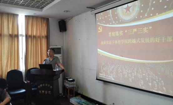 熊兴吾书记指出,学院开展专题教育要坚持以上率下,打造“三严三实”学院领导班子;要坚持从严要求,打造符合“三严三实”要求的干部队伍、教师队伍和管理服务队伍;要坚持有机融合,加快实现体育学院的跨越式发展。他说,搞好这次专题教育,意义深远、责任重大。我们要在中央、省委、省委教育工委和学校党委的正确领导下,齐心协力、扎扎实实把“三严三实”专题教育组织好、开展好,在学院把严的意识、严的规矩、严的风气树起来,把实的作风、实的责任、实的措施立起来,为实现学院“跨越式”发展战略目标而不懈奋斗。