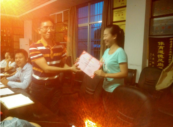 首先进行的是2016届优秀毕业生党员表彰,获表彰的学生党员1210301班唐坤、1210302班郭洁、1210401班刘巧灵、1210402班何文,副书记郭羽分别为获奖党员颁发了证书和奖金。